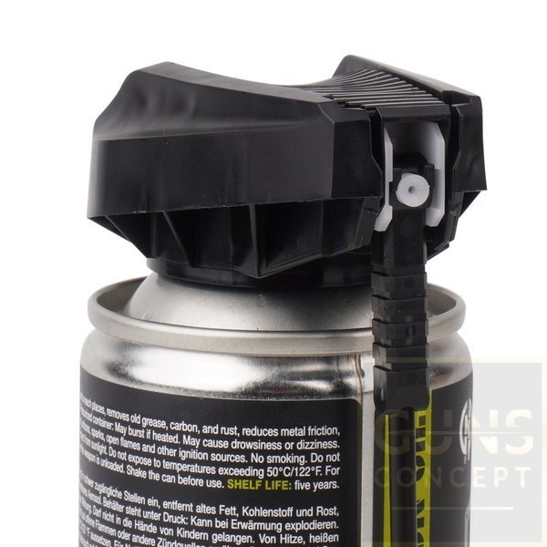 Pojemnik został wyposażony w przedłużony aplikator, ułatwiający stosowanie produktu oraz umożliwiający jego rozpylanie w formie strumienia lub rozproszonego sprayu. W celu osiągnięcia najlepszych rezultatów zaleca się używanie środka wraz z odpowiednim wyciorem do broni.