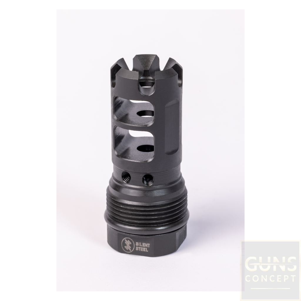 Silent Steel QD Muzzle Brake to 2-komorowe urządzenie wylotowe przeznaczone do montażu QD tłumików Silent Steel, które zapewnia bardzo dobrą kontrolę nad lufą i zmniejszenie odrzutu.