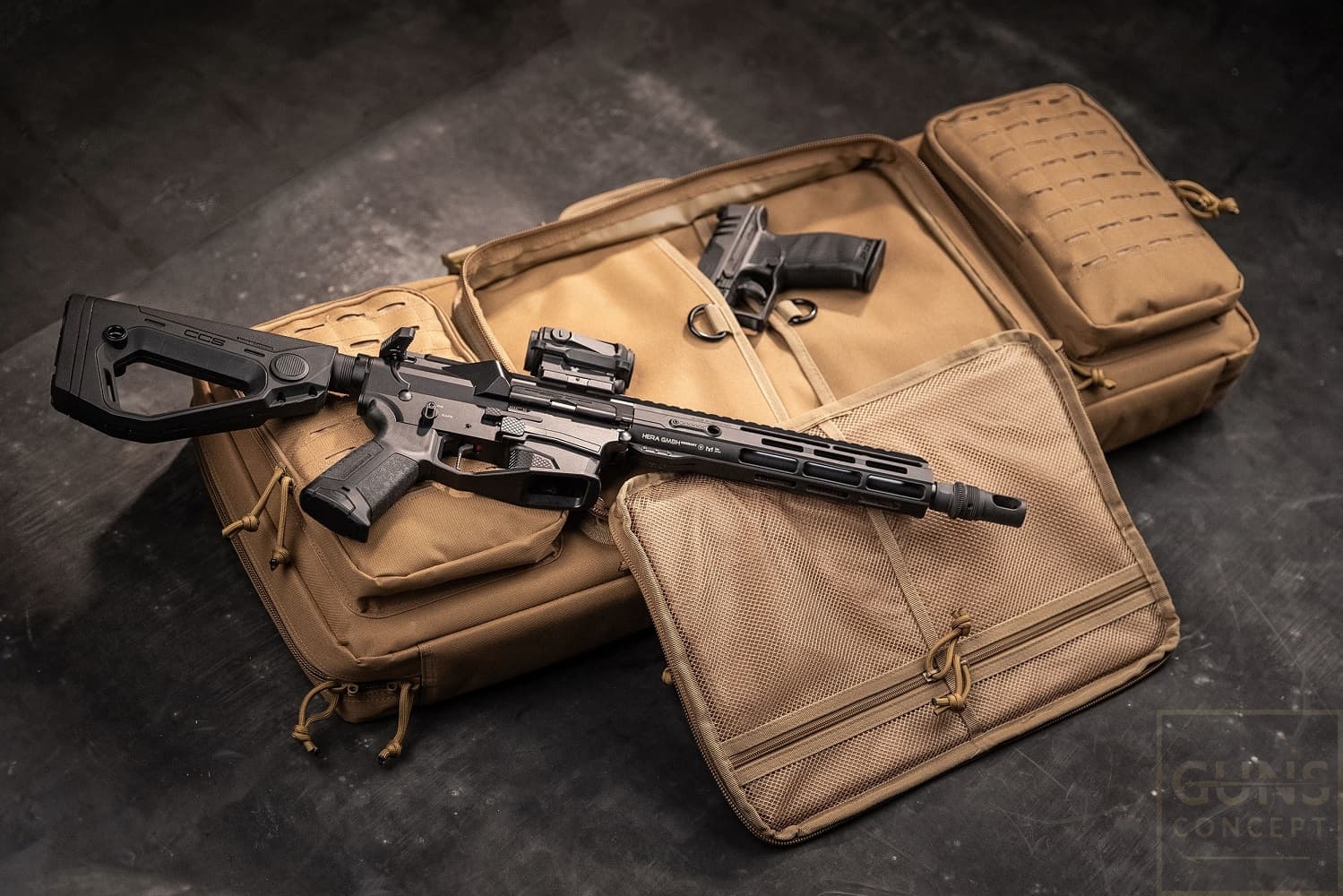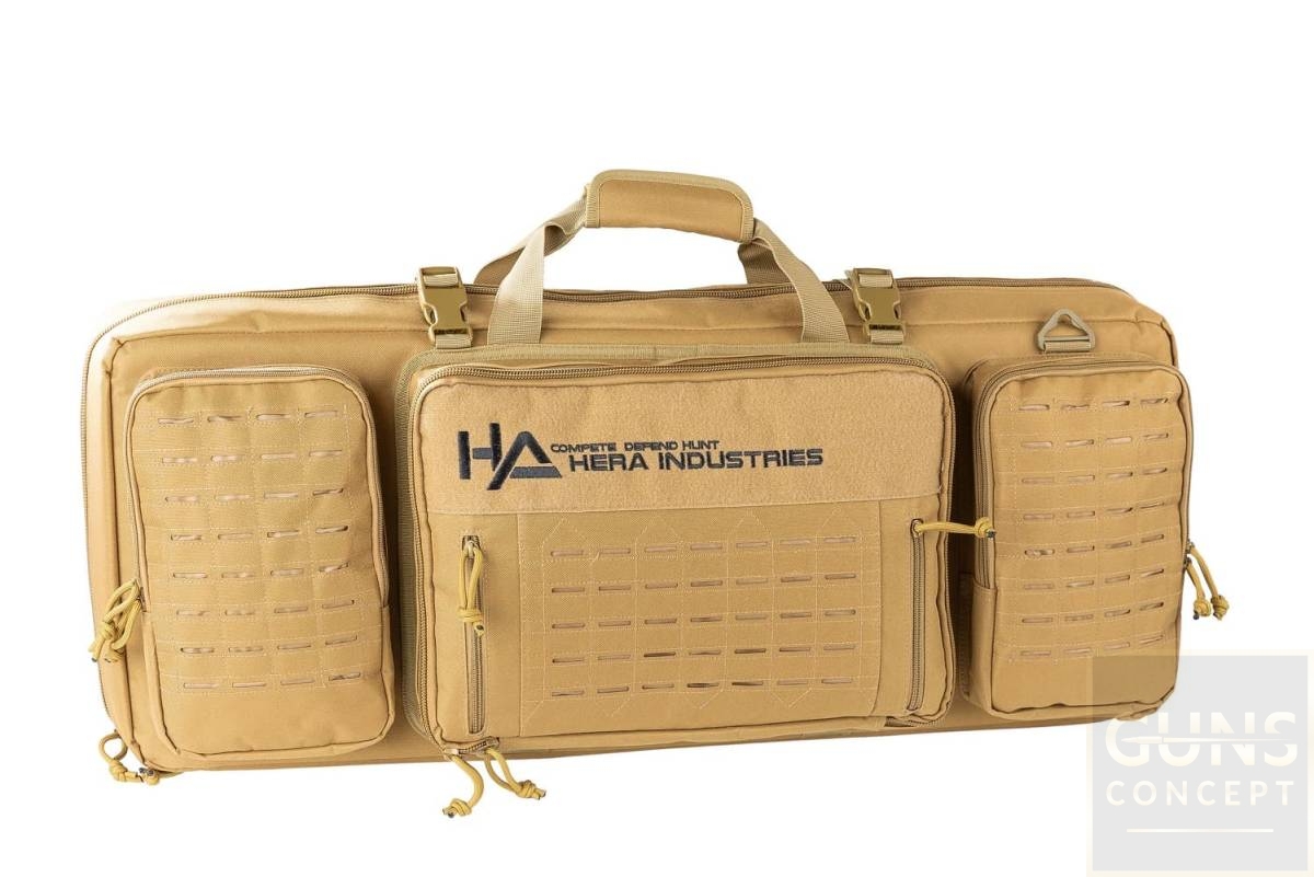 HERA Rifle Bag to nowoczesna torba transportowa na broń długą do 42" (ok. 106 cm), która zapewnia profesjonalną ochronę broni poprzez właściwości hydrofobowe i odporne na ścieranie dzięki wysokiej jakości nylonowi 1000D. Panele boczne są wyściełane, aby zapobiec uderzeniom i uszkodzeniom przenoszonej broni. Dodatkowo broń można zamocować w wewnętrznej komorze za pomocą pasków. Indywidualne wrażenia z noszenia są gwarantowane przez opcje regulowanej, odpinanego paska do noszenia, dwa wyściełane paski naramienne i dwa uchwyty do przenoszenia. Trzy zewnętrzne kieszenie z systemem Lasercut Molle na indywidualne wyposażenie lub modułowe przedłużenia zapewniają dodatkową przestrzeń do przechowywania. 2-kierunkowe zamki błyskawiczne lub "zamki błyskawiczne" zapewniają szybki i łatwy dostęp oraz oferują możliwość zamocowania zamka. Dostępny w kolorze czarnym.
