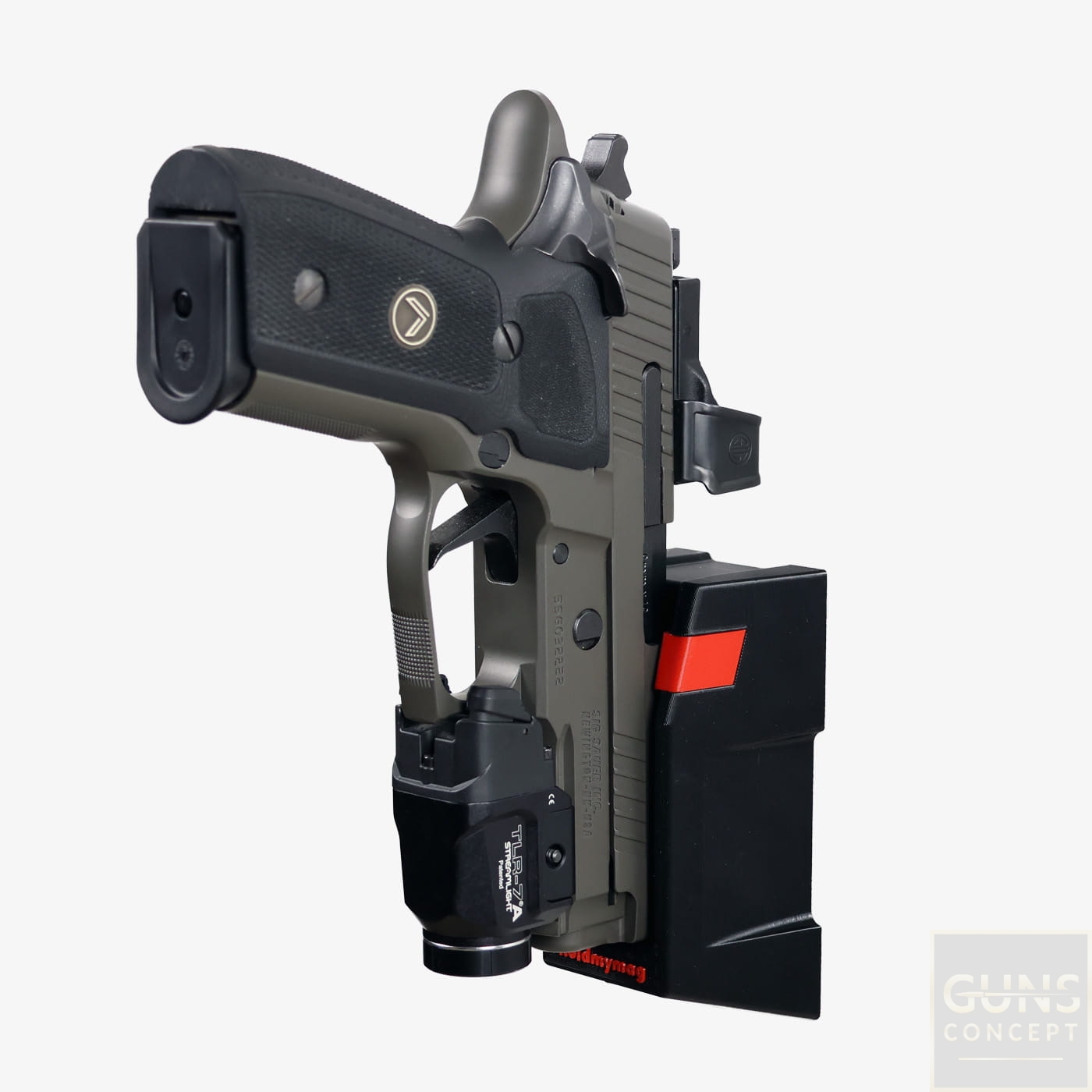 Uchwyty Home Defense OPTIC READY zostały zaprojektowane by umożliwić przechowywanie w szafie pancernej pistoletu wyposażonego w kolimator i latarkę z podpiętym magazynkiem. Projektując ten uchwyt zależało nam na jego niezawodności (wszystkie magnesy neodymowe są zamocowane za pomocą połączeń śrubowych), pewności trzymania pistoletu powiększonego o masę amunicji oraz szybkości dobycia broni.