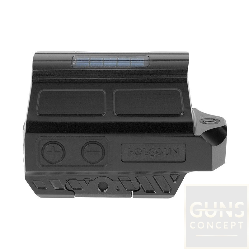 Zamknięty kolimator Holosun Enclosed Reflex HS512C z możliwością wyboru jednego z trzech znaków celowniczych, ogniwem słonecznym oraz możliwością pracy w trybie automatycznym lub manualnym.