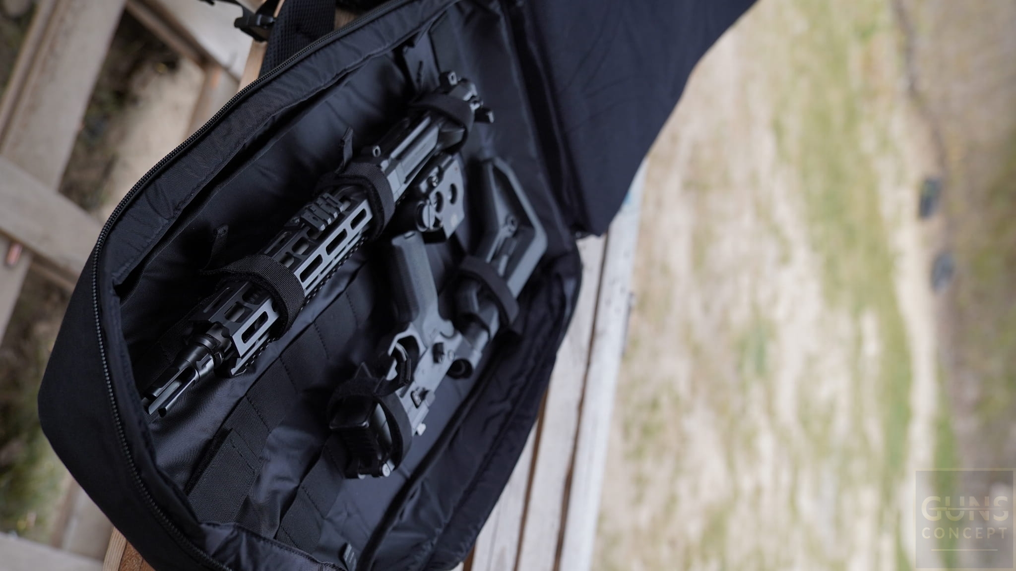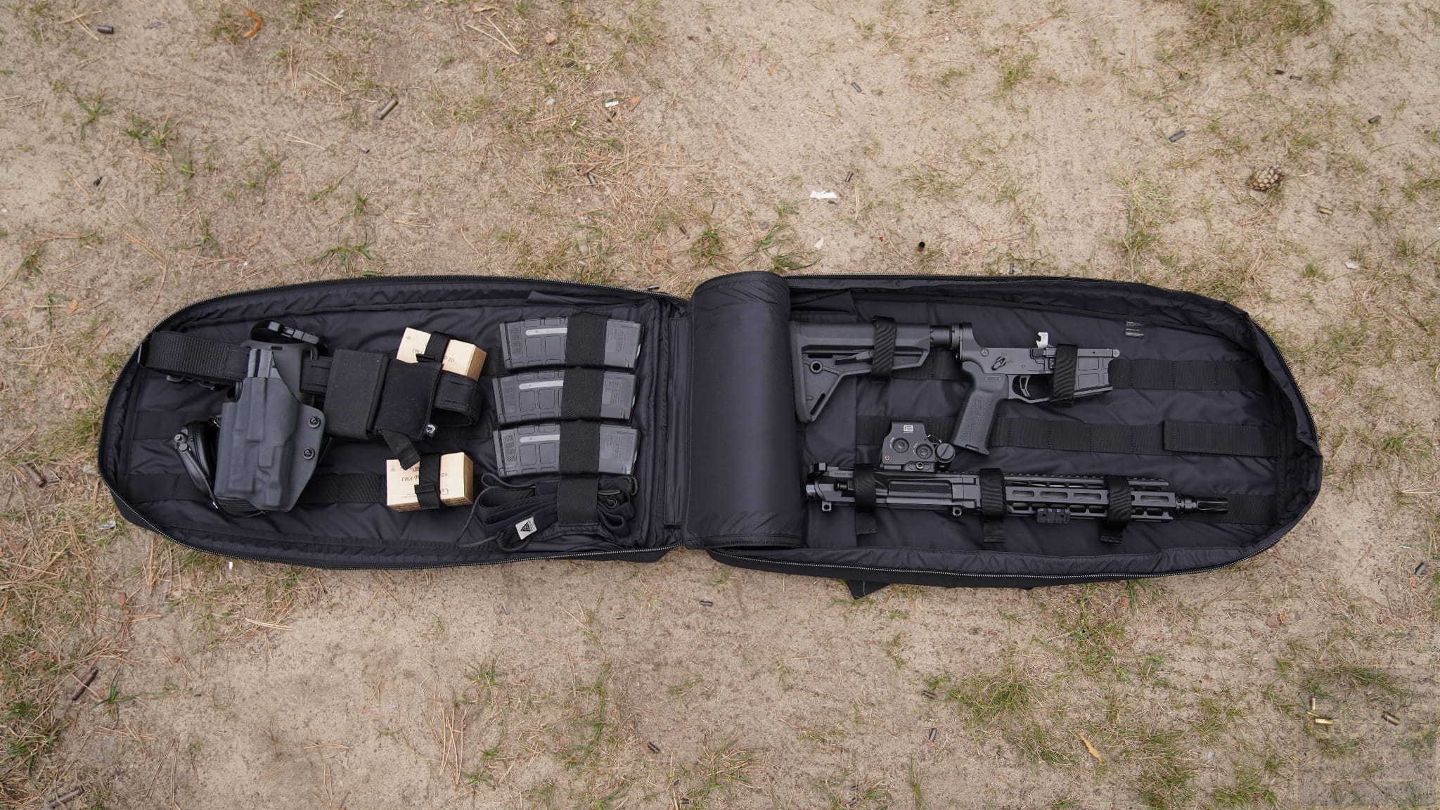 • Pomieści karabinki do 10,5 cala bez konieczności ich składania, rozłożone karabinki do 16 cali oraz karabinki oparte na konstrukcji AK ze składaną kolbą.