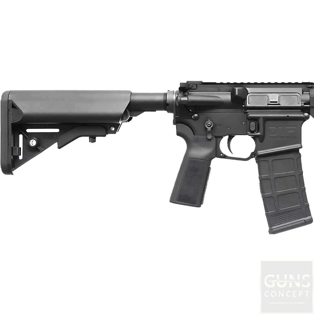 DTF Shorty to karabinek zaprojektowany z myślą o działaniach w ciasnych przestrzeniach, gdzie liczy się każdy centymetr – zarówno w budynkach, jak i pojazdach. Dzięki lufie o długości 11,5 cala, broń oferuje optymalny balans pomiędzy gabarytami a balistyką pocisku 5.56 mm, stanowiąc doskonałą bazę pod tłumik i inne akcesoria.