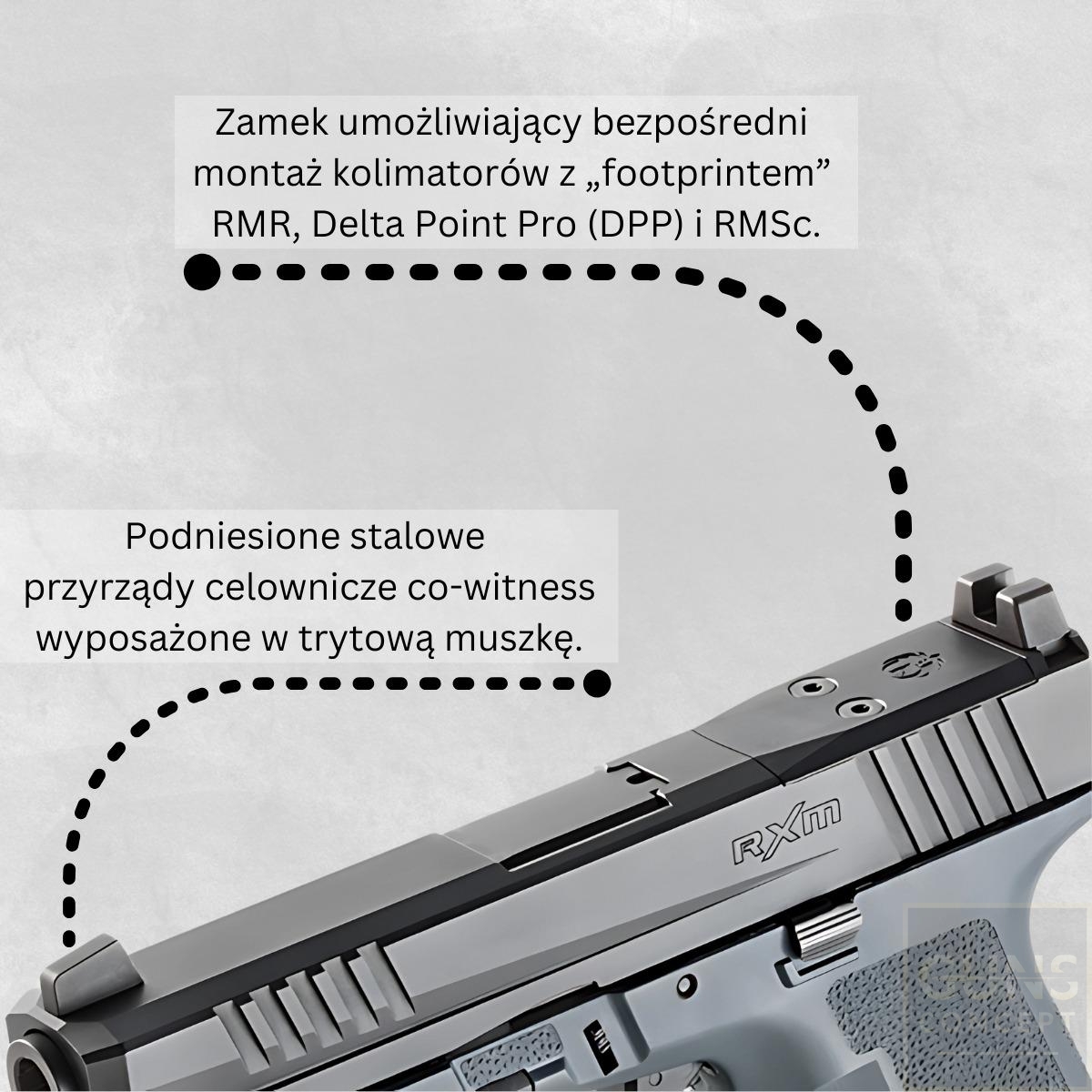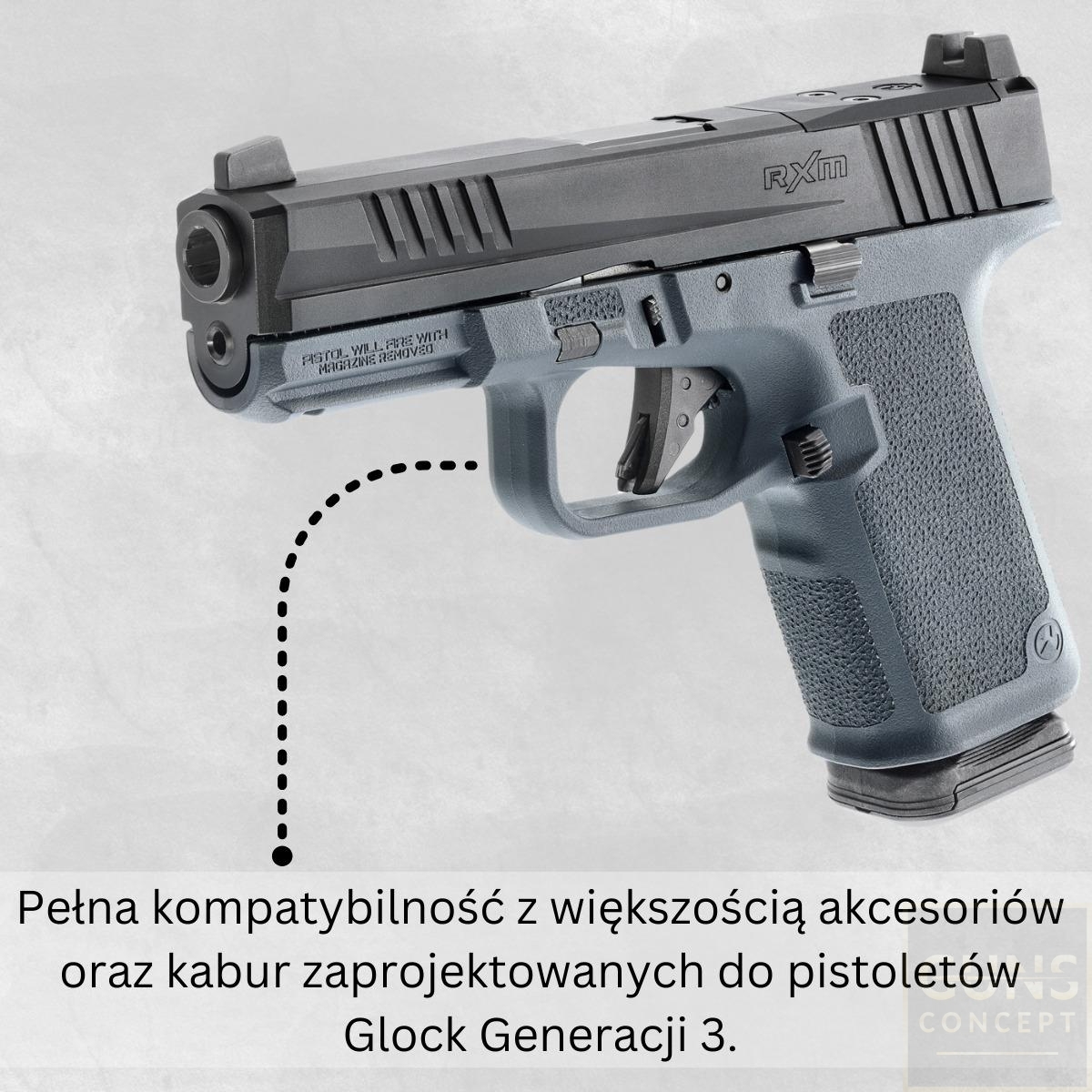Dzięki tej współpracy RXM oferuje rozwiązania, które wielu strzelców zwykle uzyskuje dopiero po wymianie fabrycznych elementów na akcesoryjne – tutaj dostajesz je już w standardzie, prosto z pudełka. To pistolet zaprojektowany z myślą o nowoczesnym strzelcu: gotowy do pracy, łatwy w personalizacji i stworzony do tego, by naprawdę z niego korzystać, a nie tylko go posiadać.