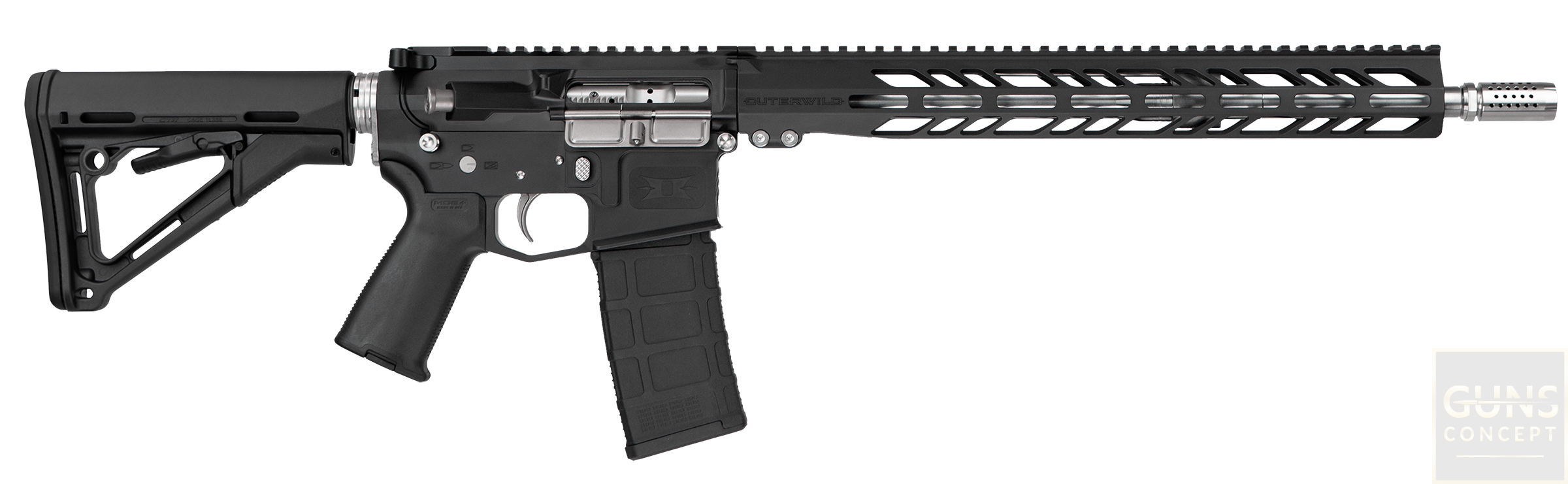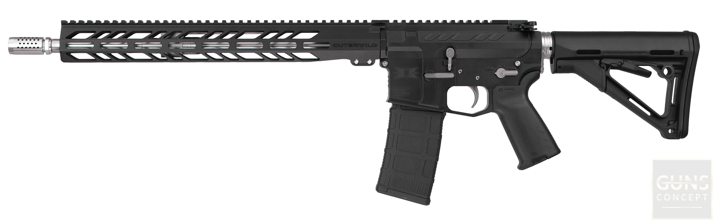 Karabinek Outerwild AR-15 RAZRBCK 16'' w kolorze czarnym (Graphite Black) to zaawansowana broń sportowa, która bazuje na platformie AR-15, zaprojektowana z myślą o precyzyjnym strzelaniu oraz niezawodności. Wyposażona jest w hybrydową komorę .223 Wylde, co umożliwia bezpieczne korzystanie z amunicji zarówno .223 Rem, jak i 5,56×45 NATO, redukując ryzyko uszkodzenia wynikającego z różnic w ciśnieniu. Rozwiązanie to przyczynia się do zwiększenia trwałości broni.
