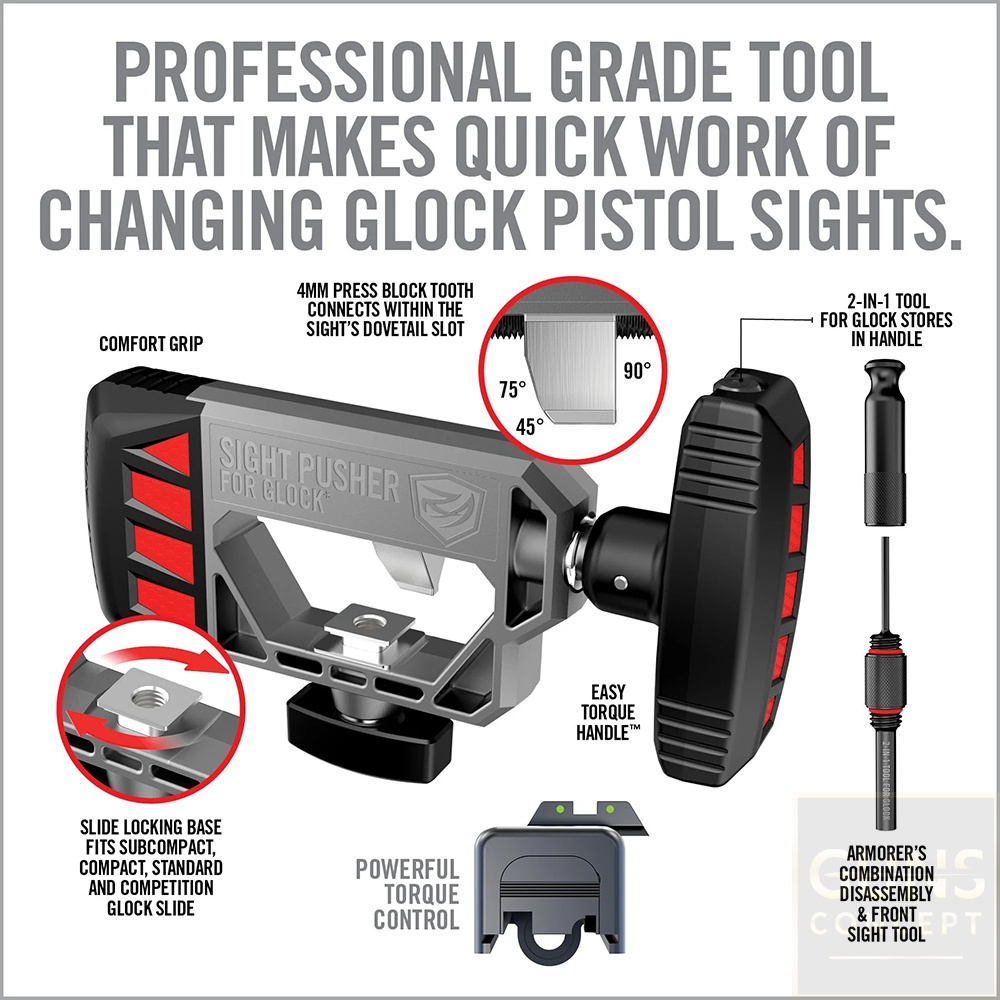 Wysokiej jakości narzędzie rusznikarskie umożliwiające montaż i demontaż tylnych przyrządów celowniczych w pistoletach Glock. Klucz wyposażony w precyzyjny mechanizm śrubowy.