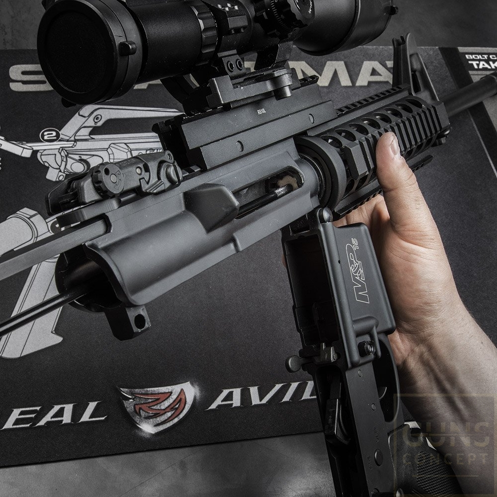 Real Avid AR-15 Smart Mat to mata do czyszczenia broni - na sterydach. Jest wystarczająco duża, aby rozłożyć AR-15 i posiada graficzne instrukcje, które pomogą Ci to zrobić.
