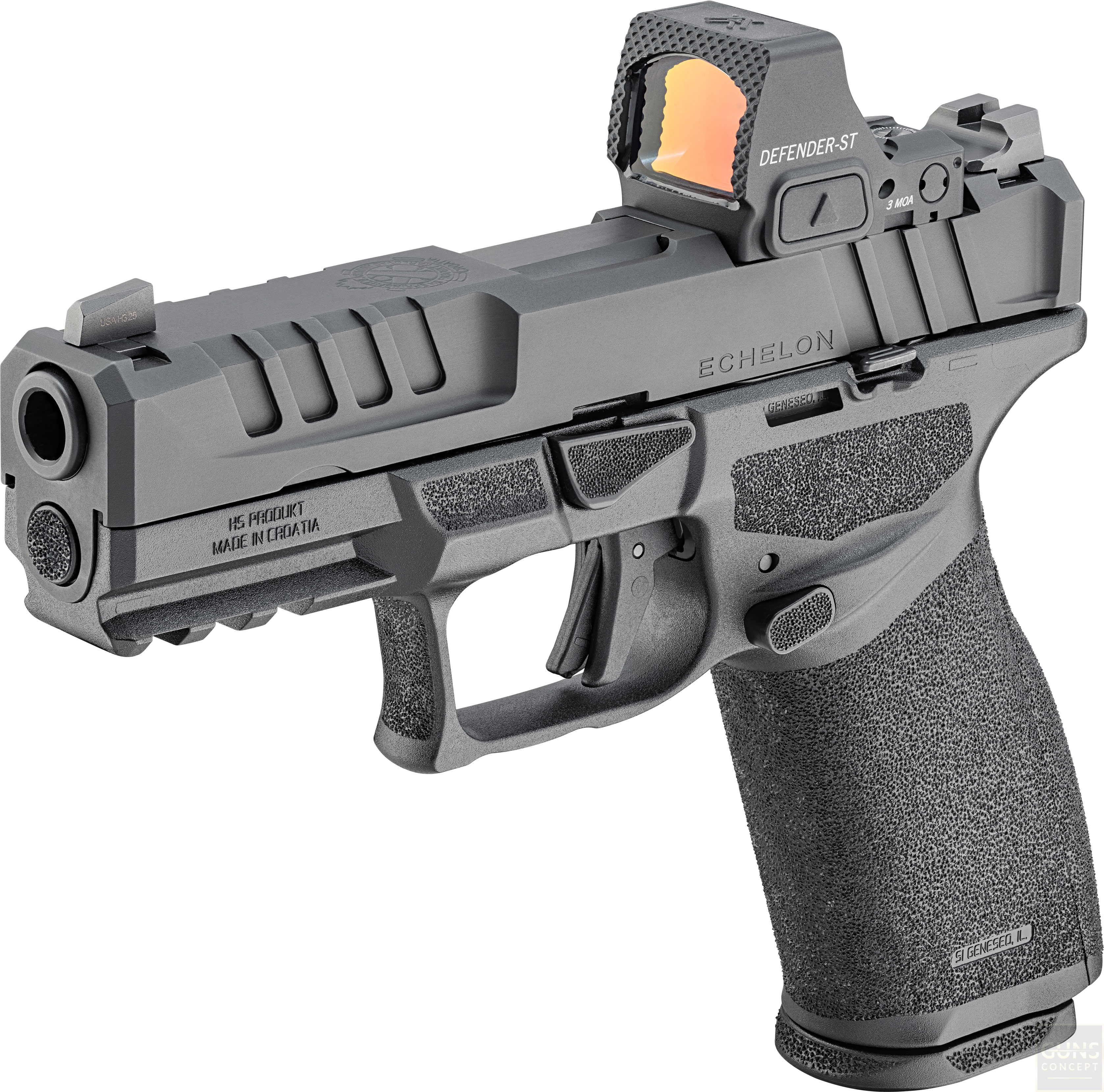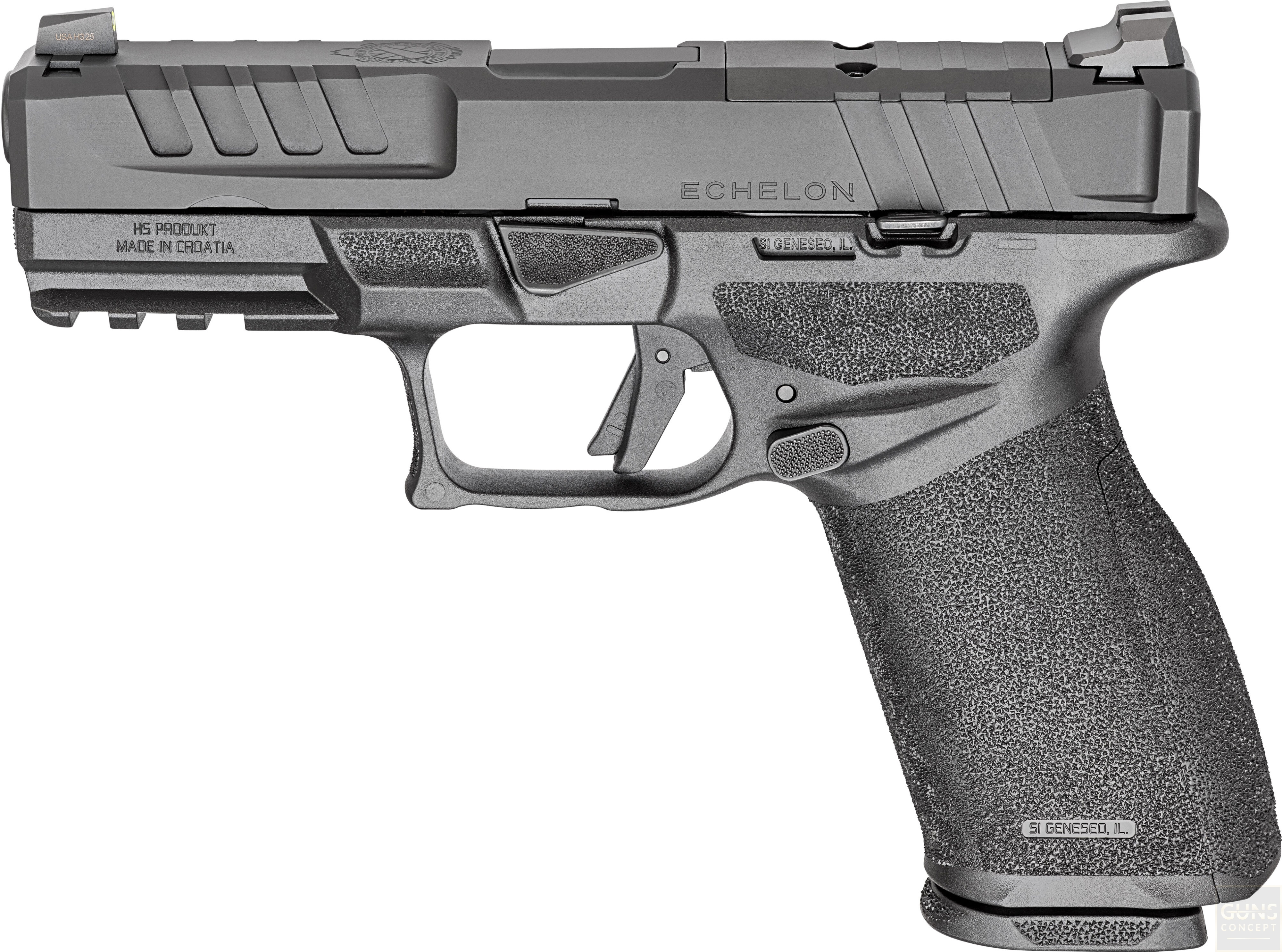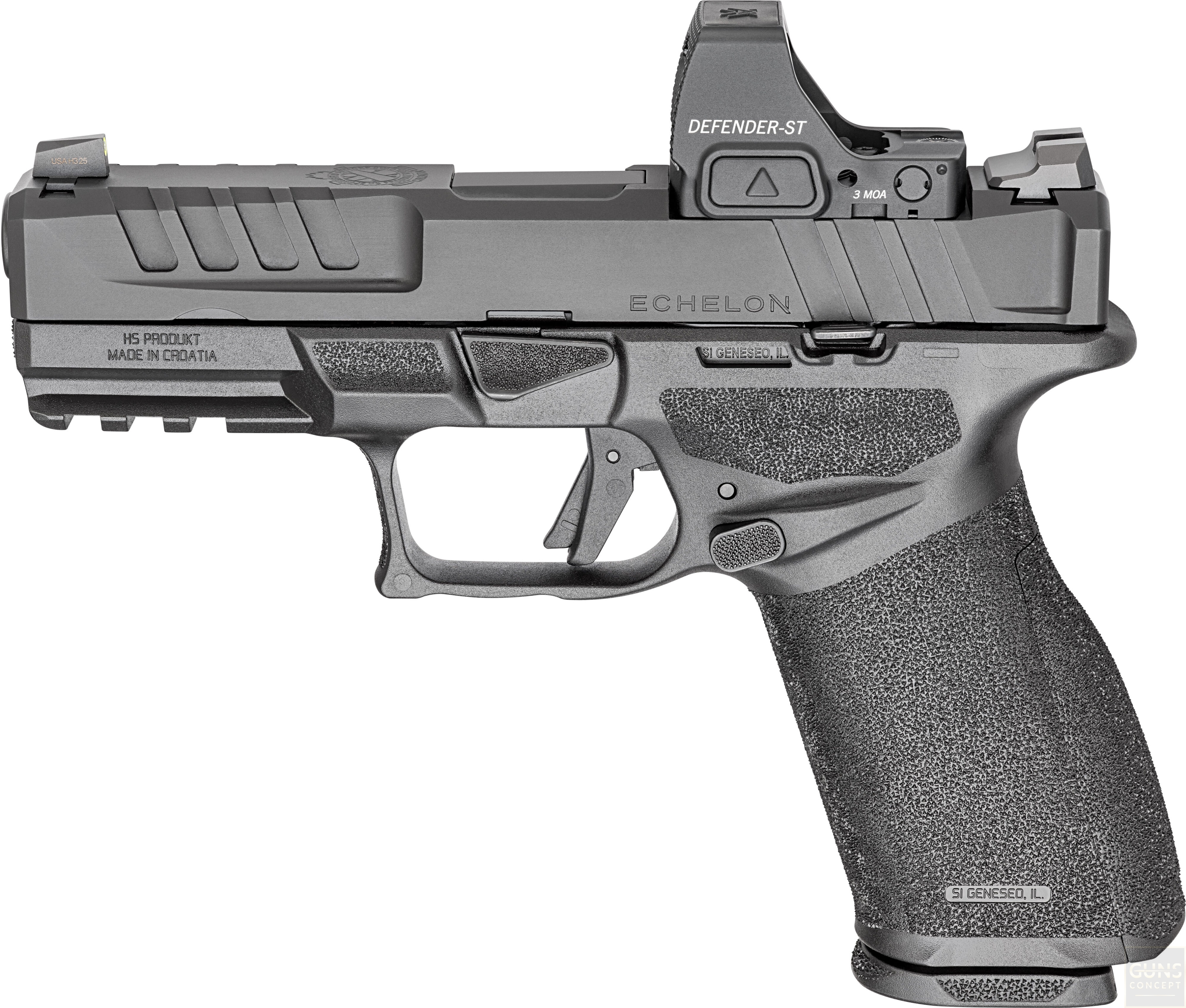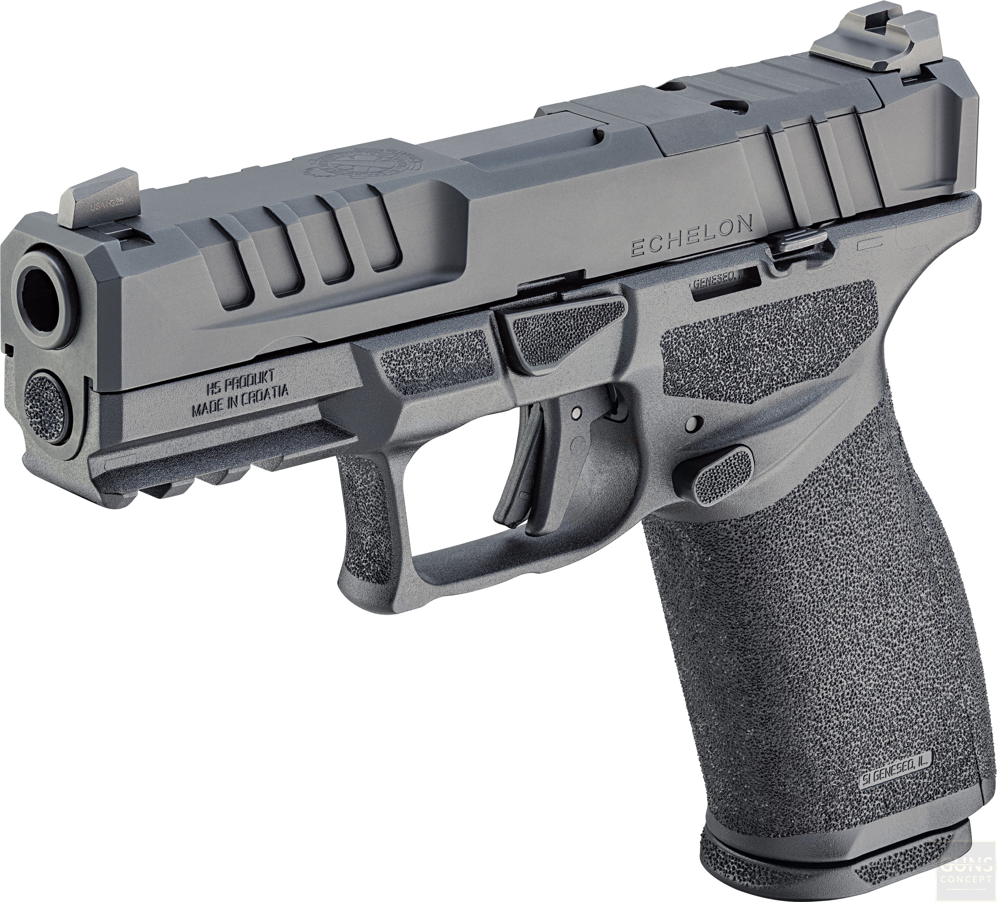 Model Echelon 4.0 FC łączy w sobie pełnowymiarową kontrolę i pojemność z kompaktowym zamkiem. Moduł chwytu o pełnej długości zapewnia pewny chwyt oraz lepszą kontrolę odrzutu, natomiast krótszy, kompaktowy zamek redukuje masę i ułatwia codzienne użytkowanie. To wszechstronne rozwiązanie sprawdzi się zarówno w służbie, obronie, jak i przy codziennym noszeniu.