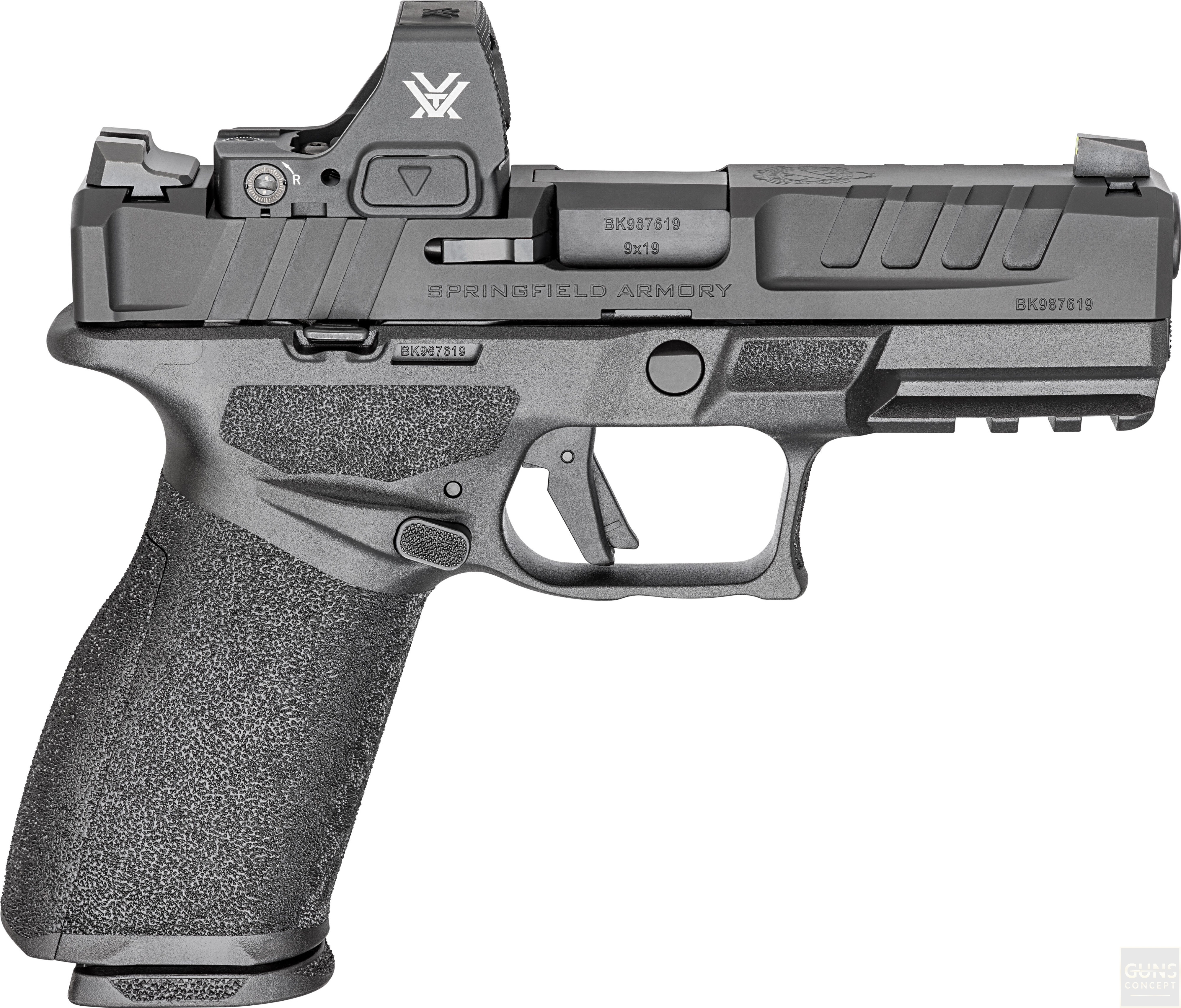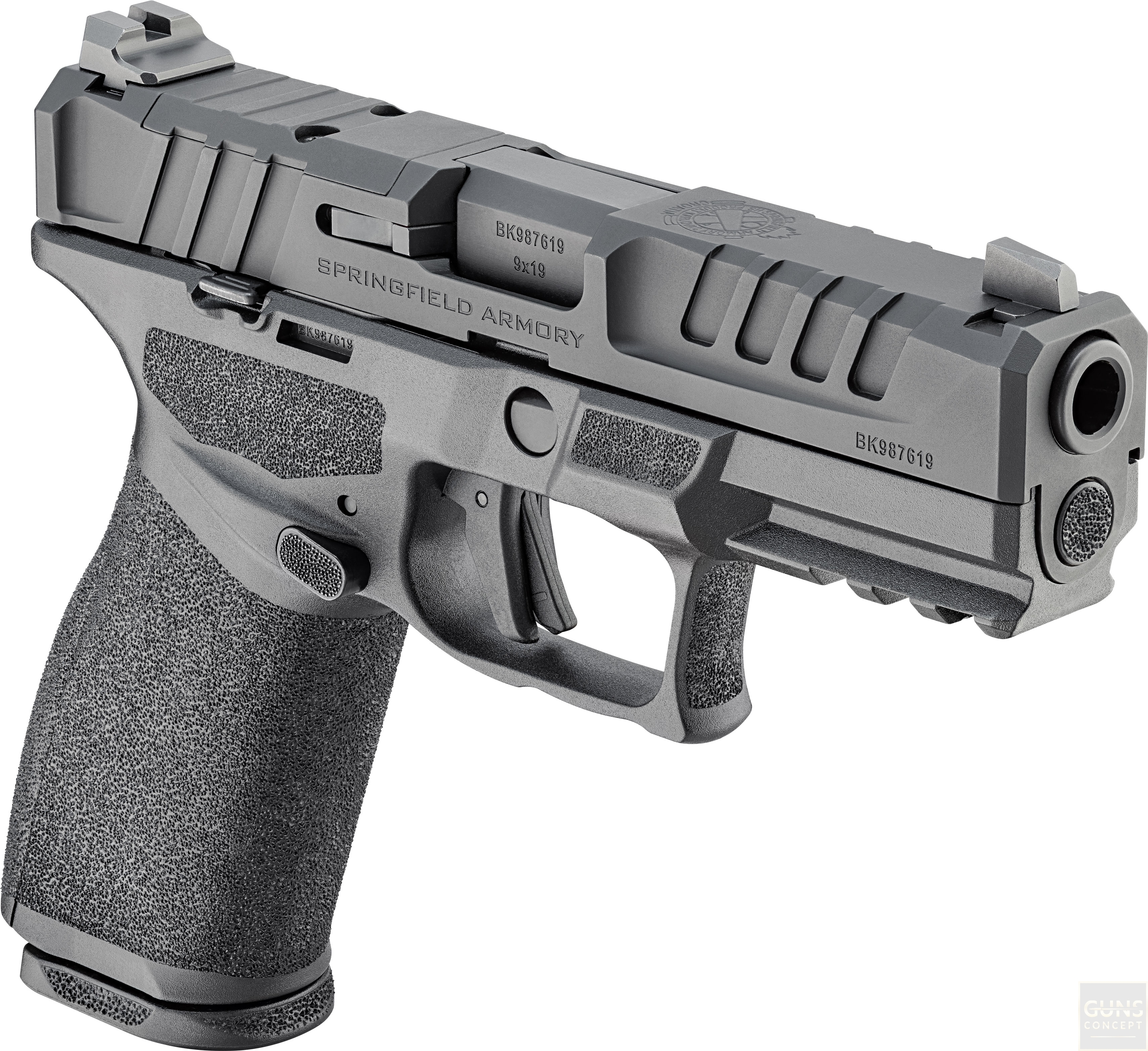 Pistolet został zaprojektowany zgodnie z najnowszymi trendami i standardami. W standardzie otrzymujemy pełną obustronność konstrukcji: zdublowany zrzut magazynka oraz zamka. Ergonomicznie cofnięty zrzut zamka zmniejsza ryzyko przypadkowego nie zatrzymania zamka po ostatnim strzale. Głębokie nacięcia na zamku – zarówno z przodu, jak i z tyłu, zapewniają pewny chwyt podczas przeładowania.