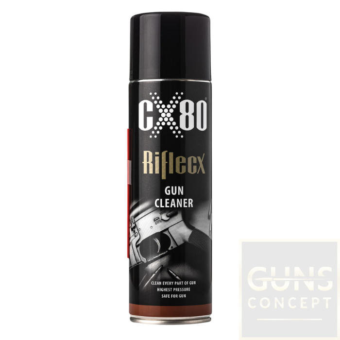 Zmywacz szybko odparowuje zostawiając suchą i czystą powierzchnię. Do dalszej konserwacji można użyć preparatu konserwująco-naprawczego RifleCX 48306 lub olejku do broni RifleCX 48308. Zmywacz nie niszczy plastikowych ani drewnianych elementów. Nie zawiera rozpuszczalników chlorowych, co oznacza, że jest bezpieczny do czyszczenia broni, a także na przykład wiatrówek długich, replik ASG oraz innych.