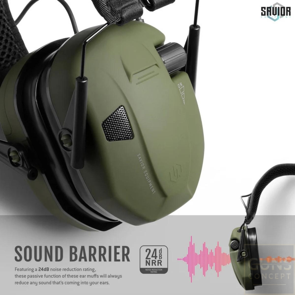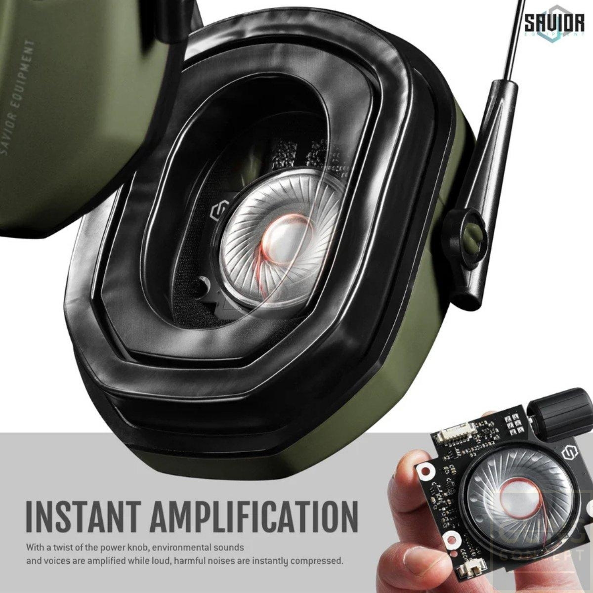 Savior Equipment Apollo to składane, elektroniczne nauszniki ochronne zaprojektowane do strzelectwa i pracy w hałaśliwym otoczeniu. Łączą skuteczną pasywną redukcję hałasu z aktywną elektroniką tłumiącą impulsy akustyczne, oferując ochronę słuchu przy jednoczesnym zachowaniu możliwości słyszenia mowy i otoczenia. Kompaktowa, składana konstrukcja oraz wygodne żelowe podkładki sprawiają, że Apollo nadaje się do całodziennego użytkowania na strzelnicy i w terenie.