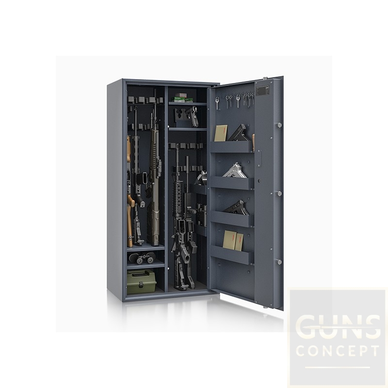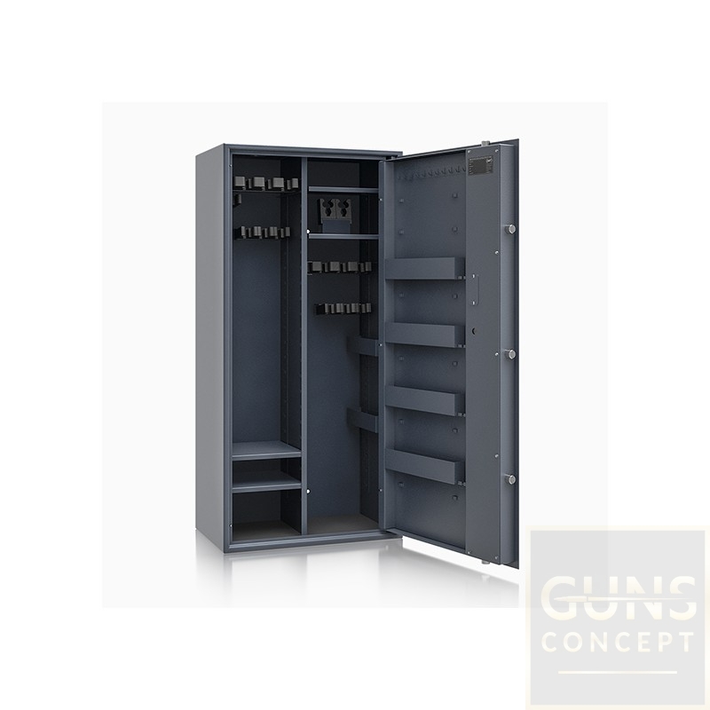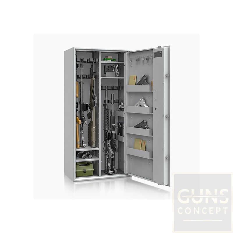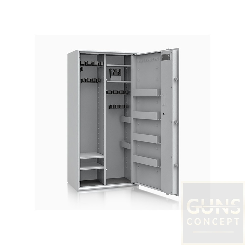 Poprzez możliwość przestawiania na wysokości półki jak i uchwytów na broń – można dowolnie spersonalizować wnętrze umożliwiając dogodne ustawienie broni o różniej wysokości.