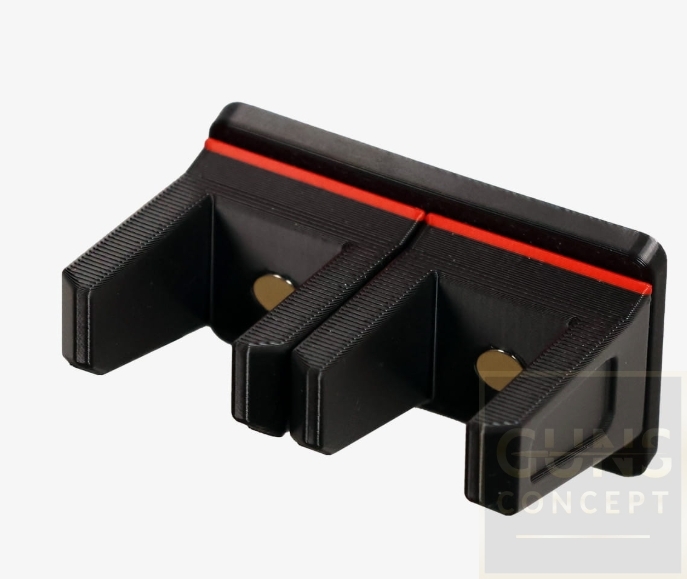 Uchwyty do magazynków Holdmymag charakteryzują się modułową konstrukcją. Składa się z listwy montażowej oraz mocowań dedykowanych do konkretnych typów magazynków. Każde mocowanie ma indywidualny magnes nośny (neodymowy), co za tym idzie siła docisku do ściany szafy jest zawsze optymalna do ilości powieszonych magazynków.