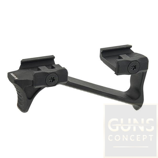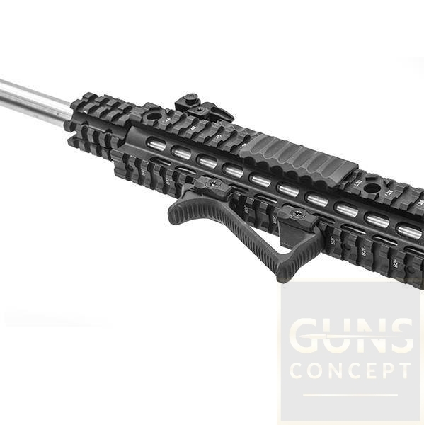 Przedni chwyt kątowy wykonany z wytrzymałego, lotniczego aluminium o lekkiej, szkieletowej konstrukcji. Wyposażony w poprzeczne frezowanie, z dodatkowym punktem oparcia dla palca. Konstrukcja chwytu umożliwia jego montaż na szynach w systemie Picatinny, a jego optymalny kąt zapewnia dopasowanie do każdej dłoni.