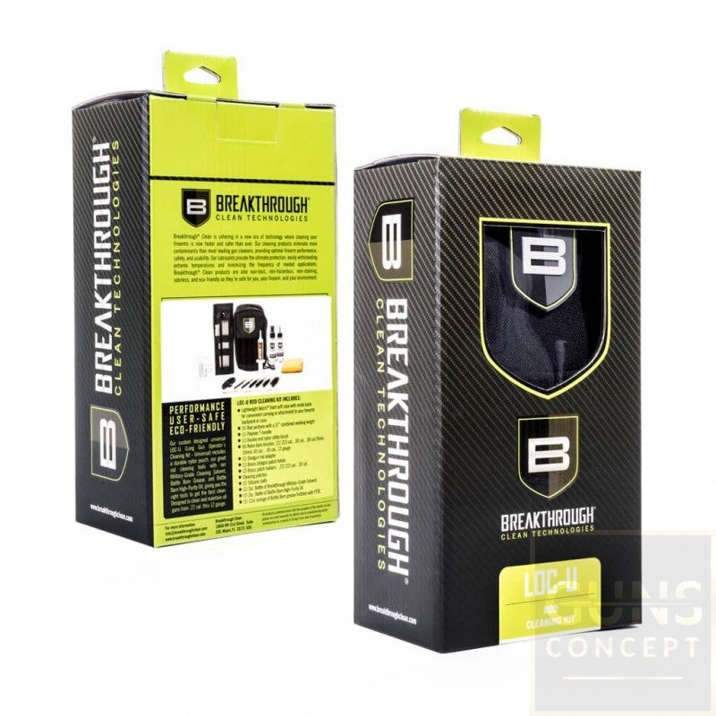 Zaprojektowany przez Breakthrough Clean Technologies® uniwersalny zestaw czyszczący LOC-U (Long Gun Operator's Cleaning Kit) zawiera wszystko, czego potrzebujesz, aby uzyskać czystszą broń w jednym wygodnym zestawie czyszczącym.