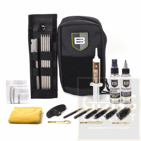 W zestawie znajdują się wysokiej jakości, wytrzymałe pręty czyszczące, a także nasze bestsellerowe produkty do pielęgnacji i smarowania broni: Breakthrough® Military-Grade Cleaning Solvent, Battle Born Grease i Battle Born High-Purity Oil. Idealny do czyszczenia w terenie lub w domu, ten najlepszy zestaw do czyszczenia broni jest umieszczony w wytrzymałym nylonowym etui i jest przeznaczony do czyszczenia i konserwacji wszystkich pistoletów od kalibru .22 do 12-gauge.